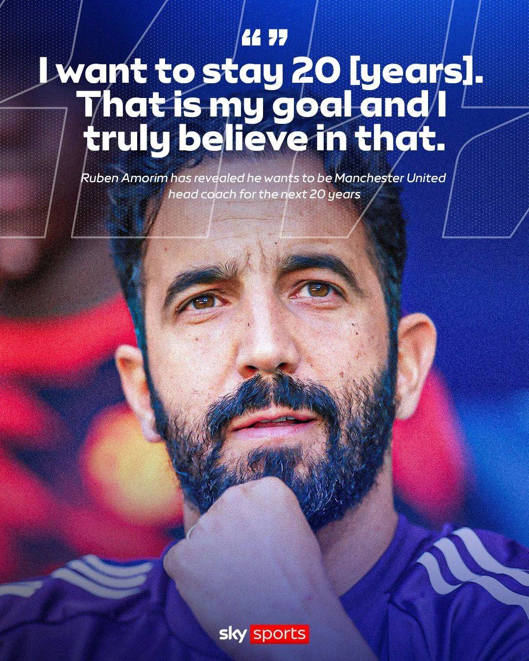 曼联自弗格森退休后,主教练的平均任期不过两年,阿莫林的前任穆里尼奥也未能打破这一魔咒。但阿莫林不甘心于此,他信心满满地表示:“我想带曼联执教20年,这一直是我的目标,我相信自己能够做到。每个赛季都有些许运气,但我会一直保持努力。我知道自己的新手期已经过去,但我已经准备好迎接新的挑战。”